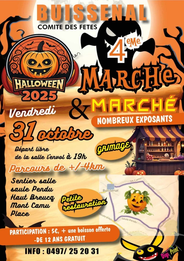 Chers amis et passionnés d’univers fantastiques, nous avons le plaisir de vous annoncer notre présence au 4e Marché & Marché Halloween de Buissenal, le 31 octobre 2025.