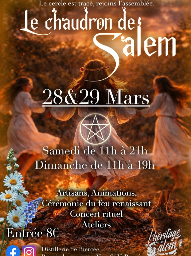 Chers amis et amateurs d’ambiances occultes et fantastiques, nous avons le plaisir de vous annoncer notre présence au Chaudron de Salem, les 28 et 29 mars, à Biercée.
