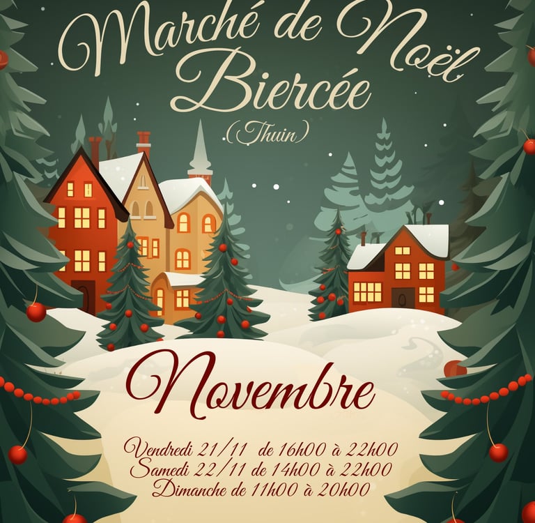Chers amis et passionnés d’artisanat et de magie de Noël, nous avons le plaisir de vous annoncer notre présence au Marché de Noël de Biercée, les 21, 22 et 23 novembre 2025.